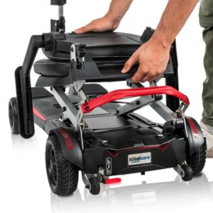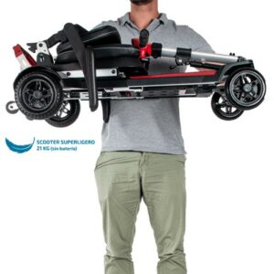 Además de ser muy ligero, el scooter Formentera es también extremadamente compacto. Con una profundidad de 97 cm, es uno de los scooters más cortos del mercado. Esta longitud le permite ser muy versátil en espacios reducidos, como ascensores pequeños. Su ancho total de 46 cm sin reposabrazos y de 56 cm con reposabrazos lo hace ideal para pasar por puertas y Junto a su peso superligero y medidas supercompactas, el scooter Formentera es plegable.